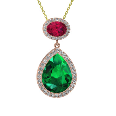 Yeşil kuvars, rodolit garnet ve beyaz zirkon 8 ayar rose altın kolye (40 cm altın rolo zincir)
