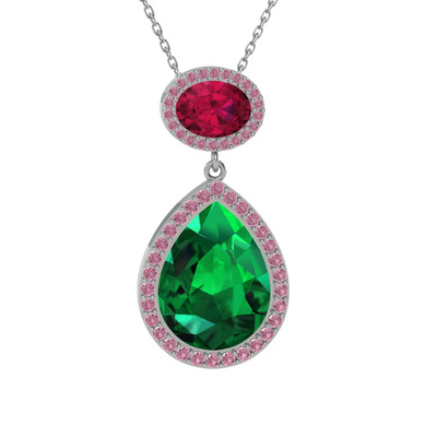 Yeşil kuvars, rodolit garnet ve pembe kuvars 18 ayar beyaz altın kolye (40 cm gümüş rolo zincir)