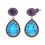 Akuamarin, ametist ve dumanlı kuvars 8 ayar beyaz altın küpe