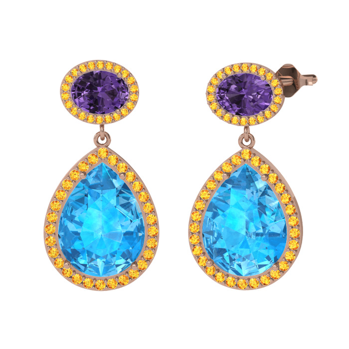 Akuamarin, ametist ve sitrin 18 ayar rose altın küpe
