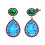 Akuamarin, yeşil kuvars ve ametist 8 ayar rose altın küpe