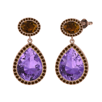Ametist ve dumanlı kuvars 8 ayar rose altın küpe