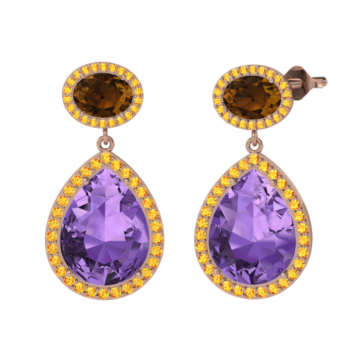 Ametist, dumanlı kuvars ve sitrin 925 ayar rose altın kaplama gümüş küpe