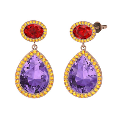 Ametist, garnet ve sitrin 18 ayar rose altın küpe