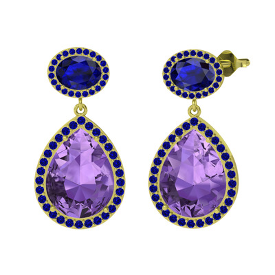 Ametist ve lab safir 925 ayar altın kaplama gümüş küpe