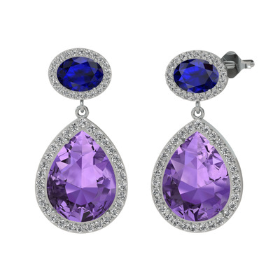 Ametist, lab safir ve beyaz zirkon 14 ayar beyaz altın küpe