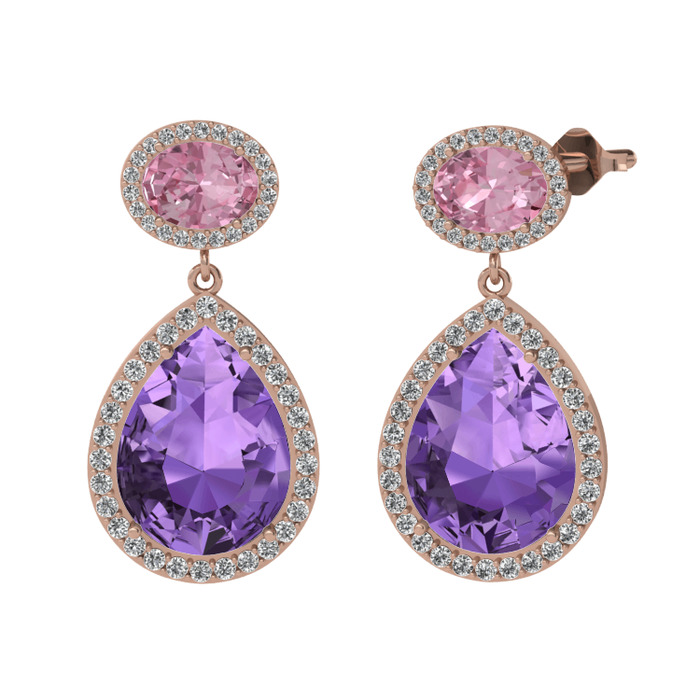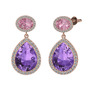 Ametist, pembe kuvars ve beyaz zirkon 8 ayar rose altın küpe