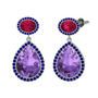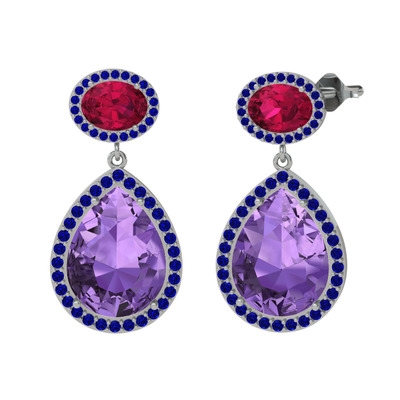 Ametist, rodolit garnet ve lab safir 18 ayar beyaz altın küpe