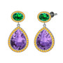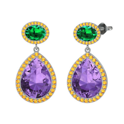 Ametist, yeşil kuvars ve sitrin 8 ayar beyaz altın küpe