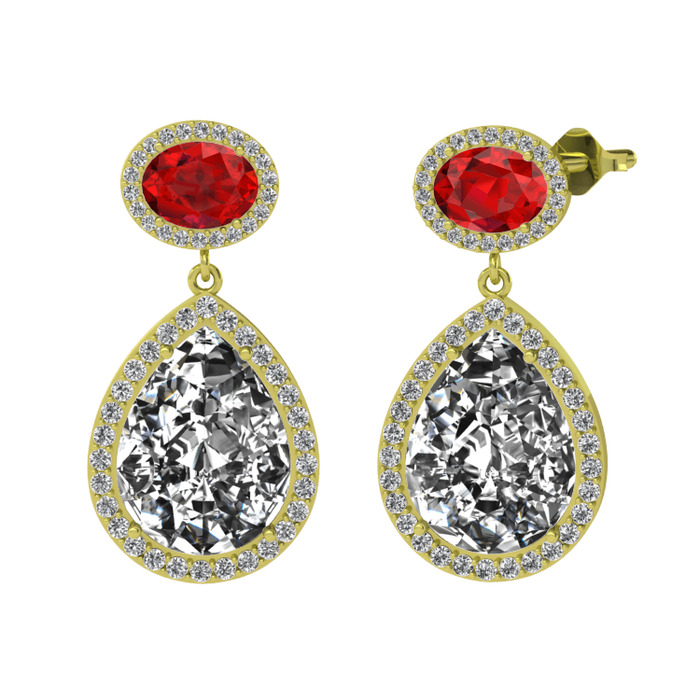 Beyaz zirkon ve garnet 18 ayar altın küpe