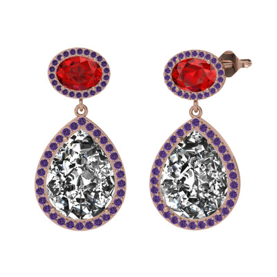 Beyaz zirkon, garnet ve ametist 14 ayar rose altın küpe