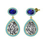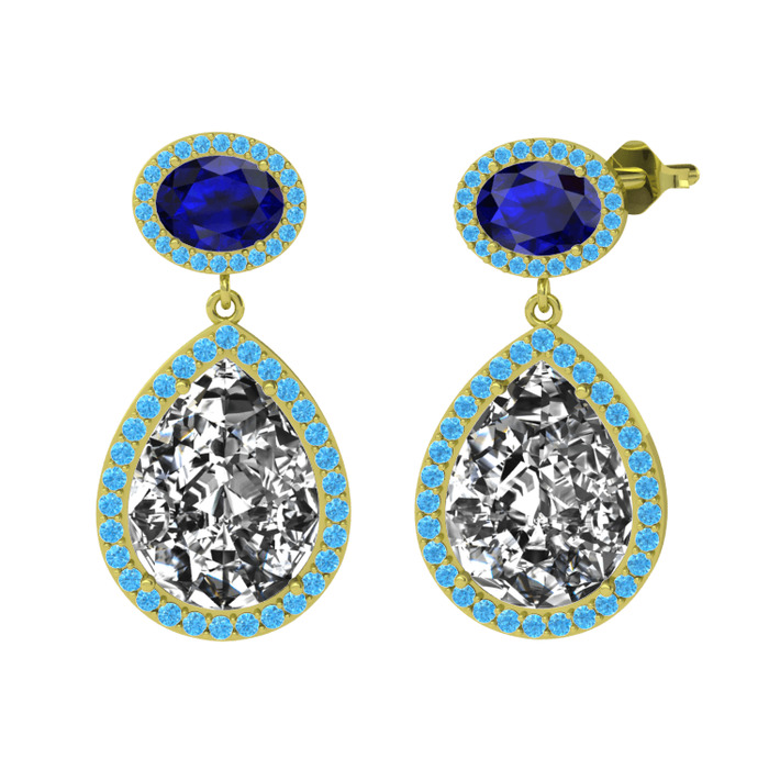 Beyaz zirkon, lab safir ve akuamarin 8 ayar altın küpe