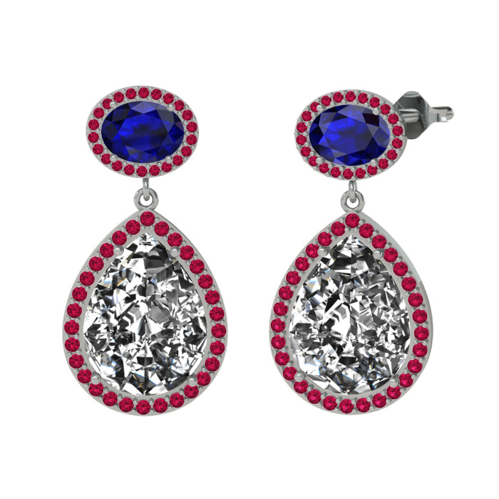 Beyaz zirkon, lab safir ve rodolit garnet 14 ayar beyaz altın küpe