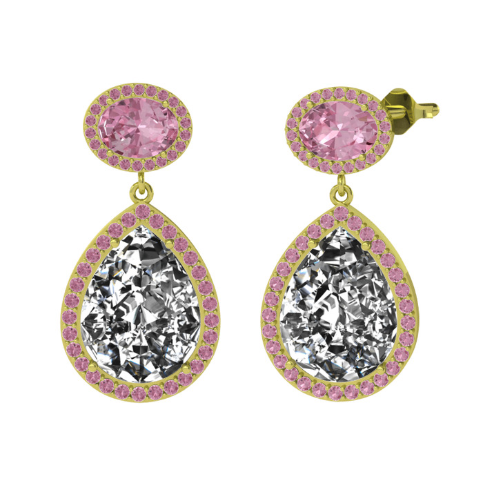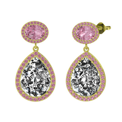Beyaz zirkon ve pembe kuvars 8 ayar altın küpe