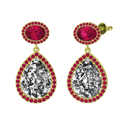 Beyaz zirkon ve rodolit garnet 18 ayar altın küpe