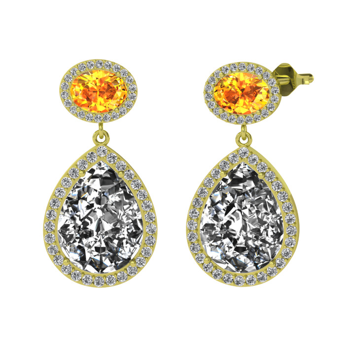 Beyaz zirkon ve sitrin 925 ayar altın kaplama gümüş küpe