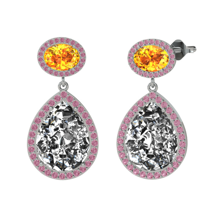 Beyaz zirkon, sitrin ve pembe kuvars 14 ayar beyaz altın küpe
