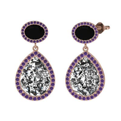 Beyaz zirkon, siyah zirkon ve ametist 18 ayar rose altın küpe