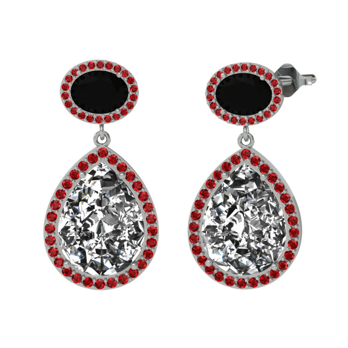 Beyaz zirkon, siyah zirkon ve garnet 14 ayar beyaz altın küpe