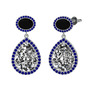 Beyaz zirkon, siyah zirkon ve lab safir 14 ayar beyaz altın küpe