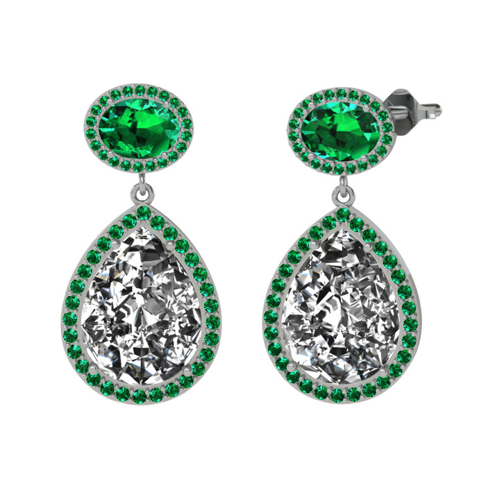 Beyaz zirkon ve yeşil kuvars 18 ayar beyaz altın küpe
