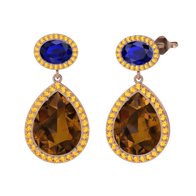 Dumanlı kuvars, lab safir ve sitrin 8 ayar rose altın küpe