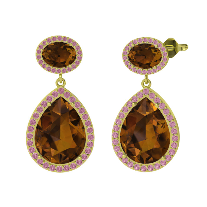 Dumanlı kuvars ve pembe kuvars 8 ayar altın küpe