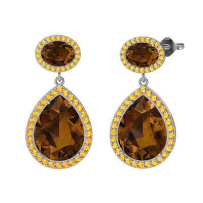 Dumanlı kuvars ve sitrin 925 ayar gümüş küpe