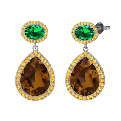 Dumanlı kuvars, yeşil kuvars ve sitrin 925 ayar gümüş küpe
