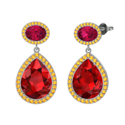 Garnet, rodolit garnet ve sitrin 925 ayar gümüş küpe