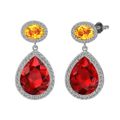 Garnet, sitrin ve beyaz zirkon 14 ayar beyaz altın küpe