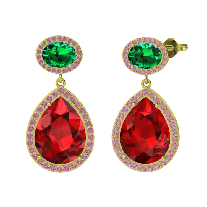 Garnet, yeşil kuvars ve pembe kuvars 8 ayar altın küpe