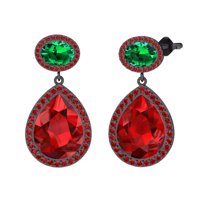 Garnet ve yeşil kuvars 925 ayar siyah rodyum kaplama gümüş küpe