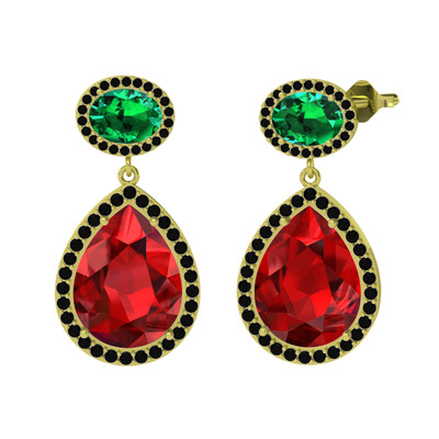 Garnet, yeşil kuvars ve siyah zirkon 8 ayar altın küpe