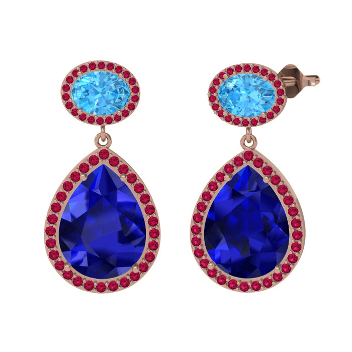 Lab safir, akuamarin ve rodolit garnet 925 ayar rose altın kaplama gümüş küpe