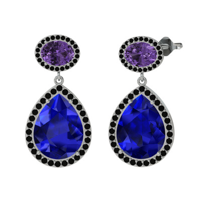 Lab safir, ametist ve siyah zirkon 14 ayar beyaz altın küpe