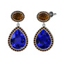 Lab safir ve dumanlı kuvars 8 ayar beyaz altın küpe