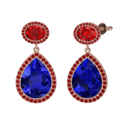 Lab safir ve garnet 18 ayar rose altın küpe