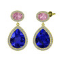 Lab safir, pembe kuvars ve beyaz zirkon 14 ayar altın küpe