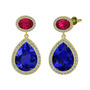 Lab safir, rodolit garnet ve beyaz zirkon 14 ayar altın küpe