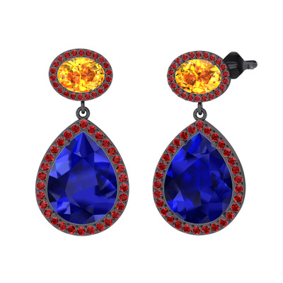 Lab safir, sitrin ve garnet 925 ayar siyah rodyum kaplama gümüş küpe