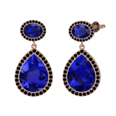 Lab safir ve siyah zirkon 14 ayar rose altın küpe