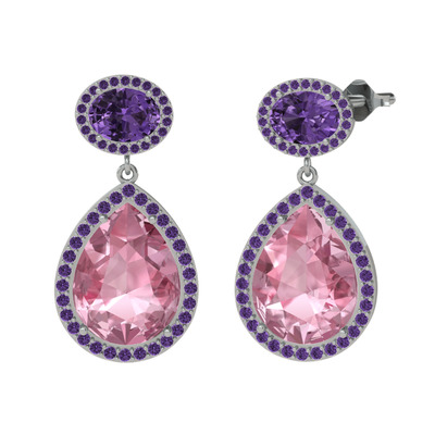 Pembe kuvars ve ametist 18 ayar beyaz altın küpe