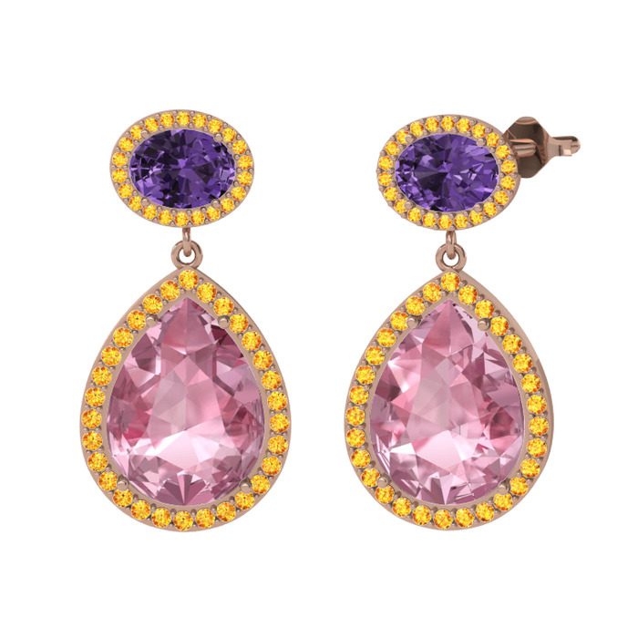 Pembe kuvars, ametist ve sitrin 18 ayar rose altın küpe
