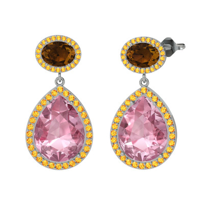 Pembe kuvars, dumanlı kuvars ve sitrin 925 ayar gümüş küpe