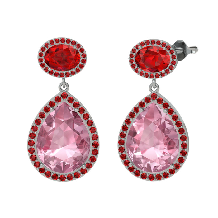 Pembe kuvars ve garnet 18 ayar beyaz altın küpe