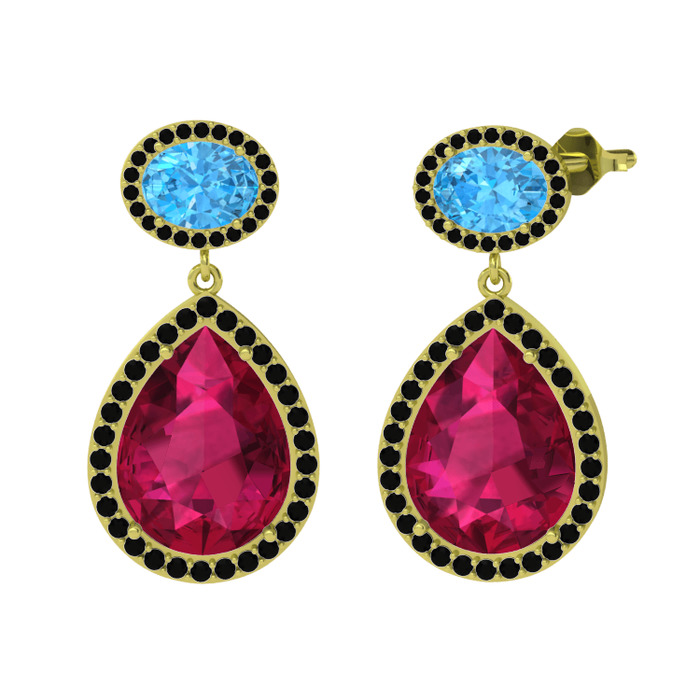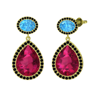 Rodolit garnet, akuamarin ve siyah zirkon 925 ayar altın kaplama gümüş küpe