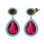 Rodolit garnet, dumanlı kuvars ve akuamarin 18 ayar beyaz altın küpe