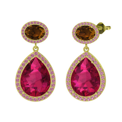 Rodolit garnet, dumanlı kuvars ve pembe kuvars 8 ayar altın küpe