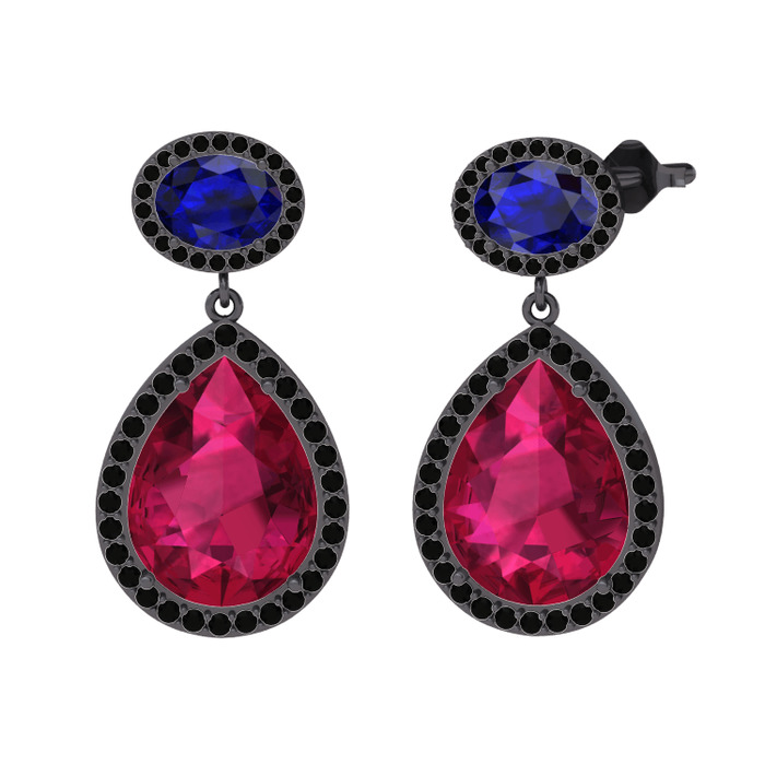 Rodolit garnet, lab safir ve siyah zirkon 925 ayar siyah rodyum kaplama gümüş küpe